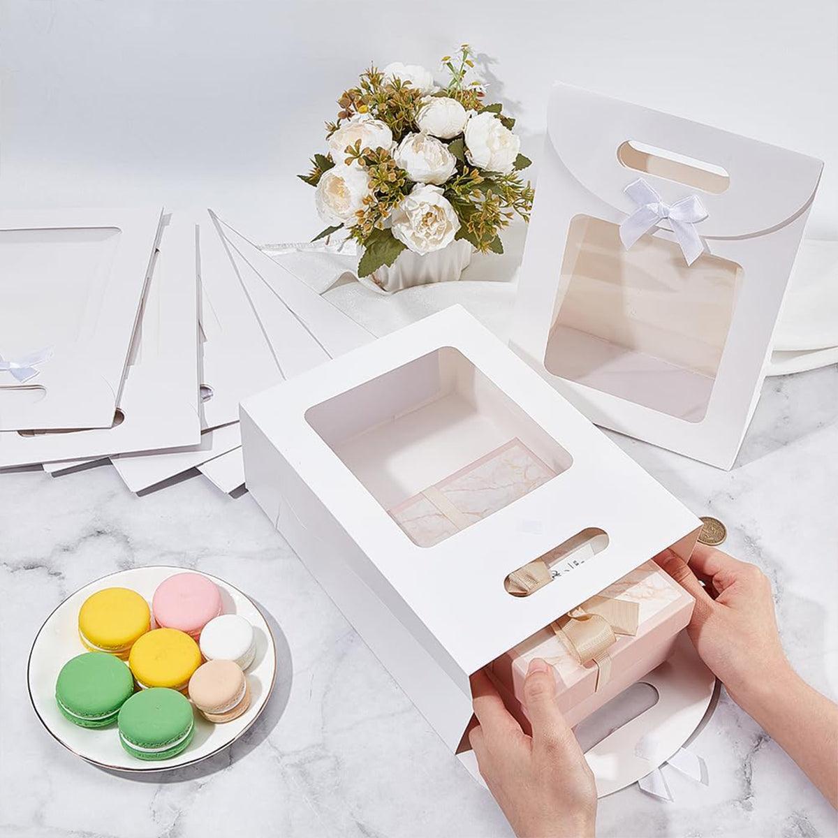 These elegant bow flap tote bags are perfect for carrying small gifts, party favors, or special treats. Featuring a stylish transparent window design with a delicate bow, they offer a touch of sophistication while keeping the contents visible. Made from high-quality, sturdy paper, these bags are lightweight yet durable, ensuring secure storage and easy handling. Ideal for parties, celebrations, weddings, and various occasions.