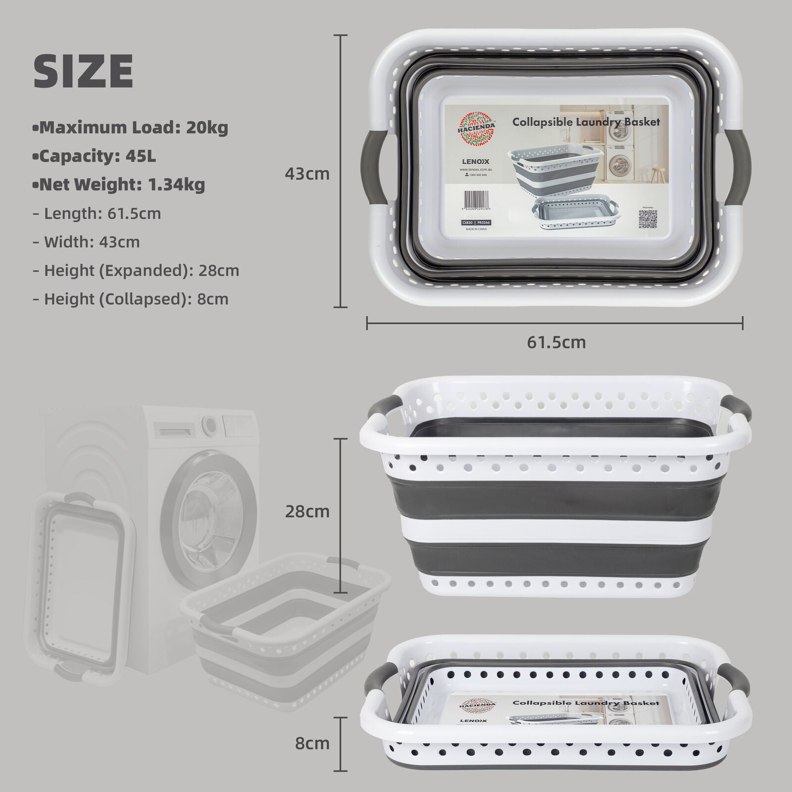 45L Space Saving Laundry Basket, Collapsible Hamper for Dorms, RVs, Homes & Garages