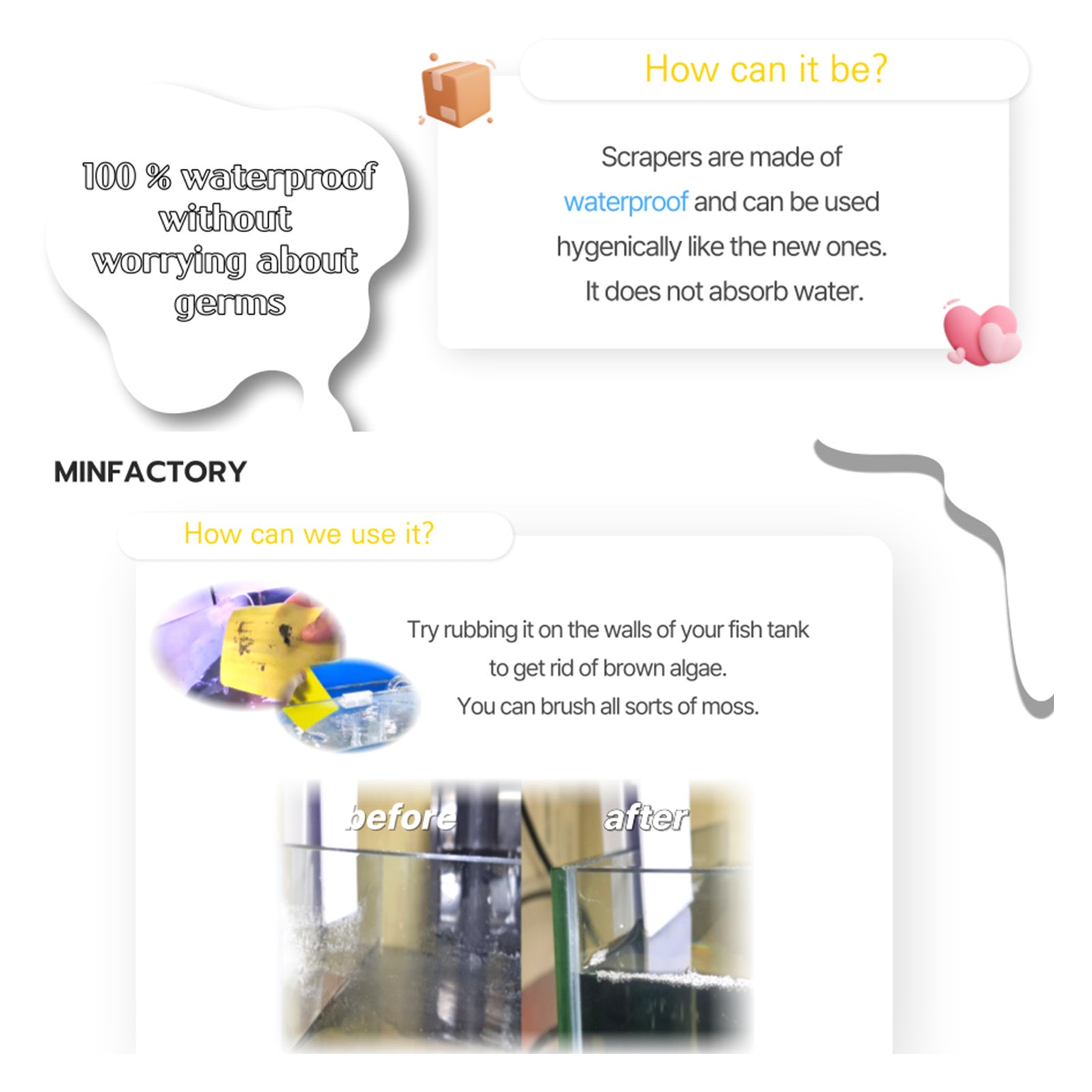 Introducing the Minfactory Fish Tank Scrubber - a set of 4 pieces proudly crafted in Korea!