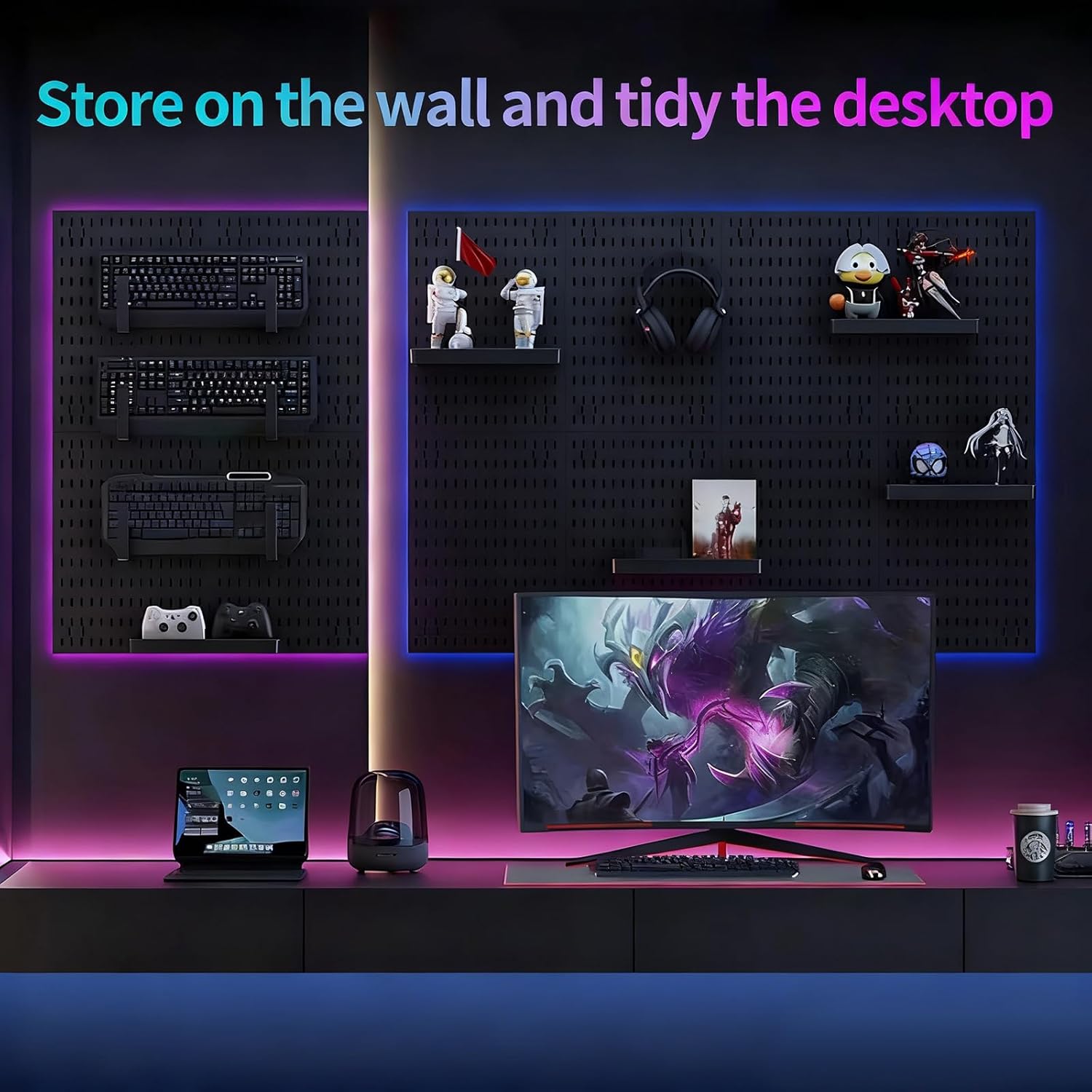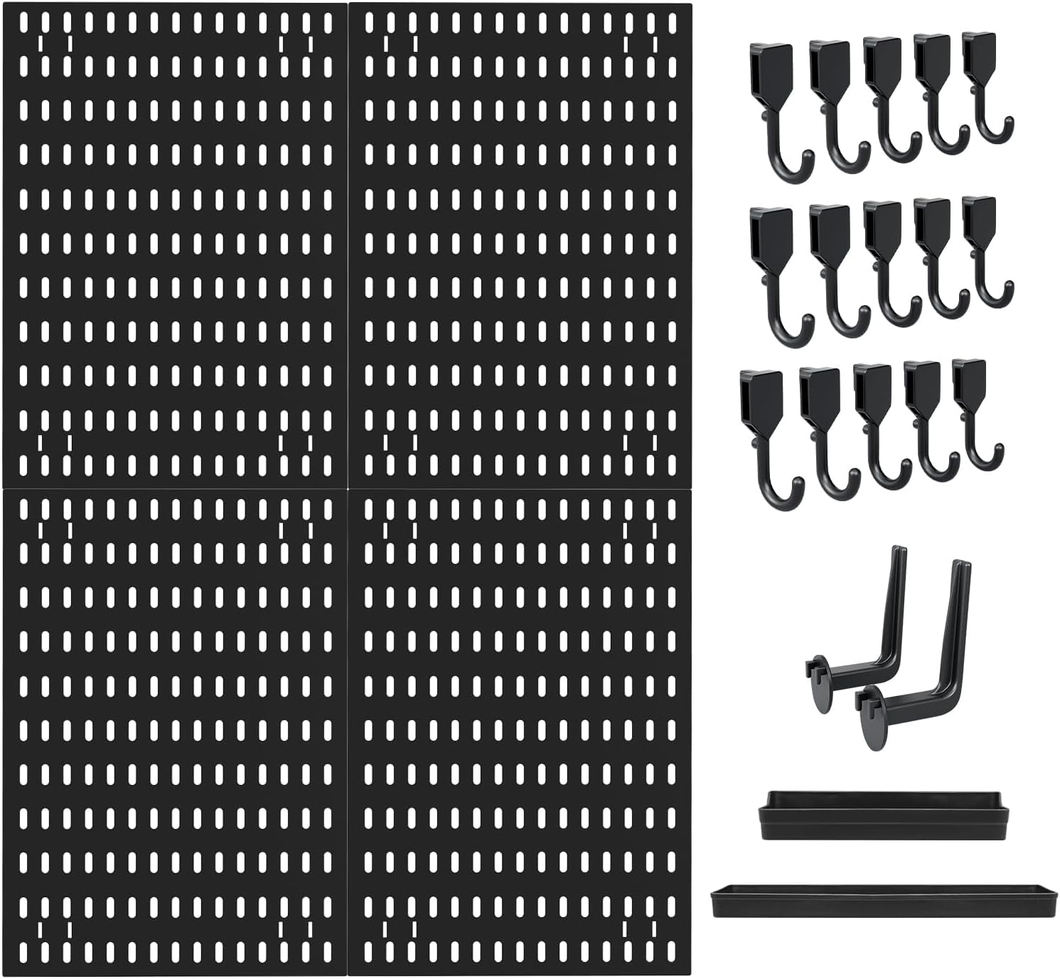 CARLA HOME Pegboard Wall Organizer Kit with 4 Modular Black Pegboards & 19 Accessories for Gaming, Office & Craft Storage (Black)