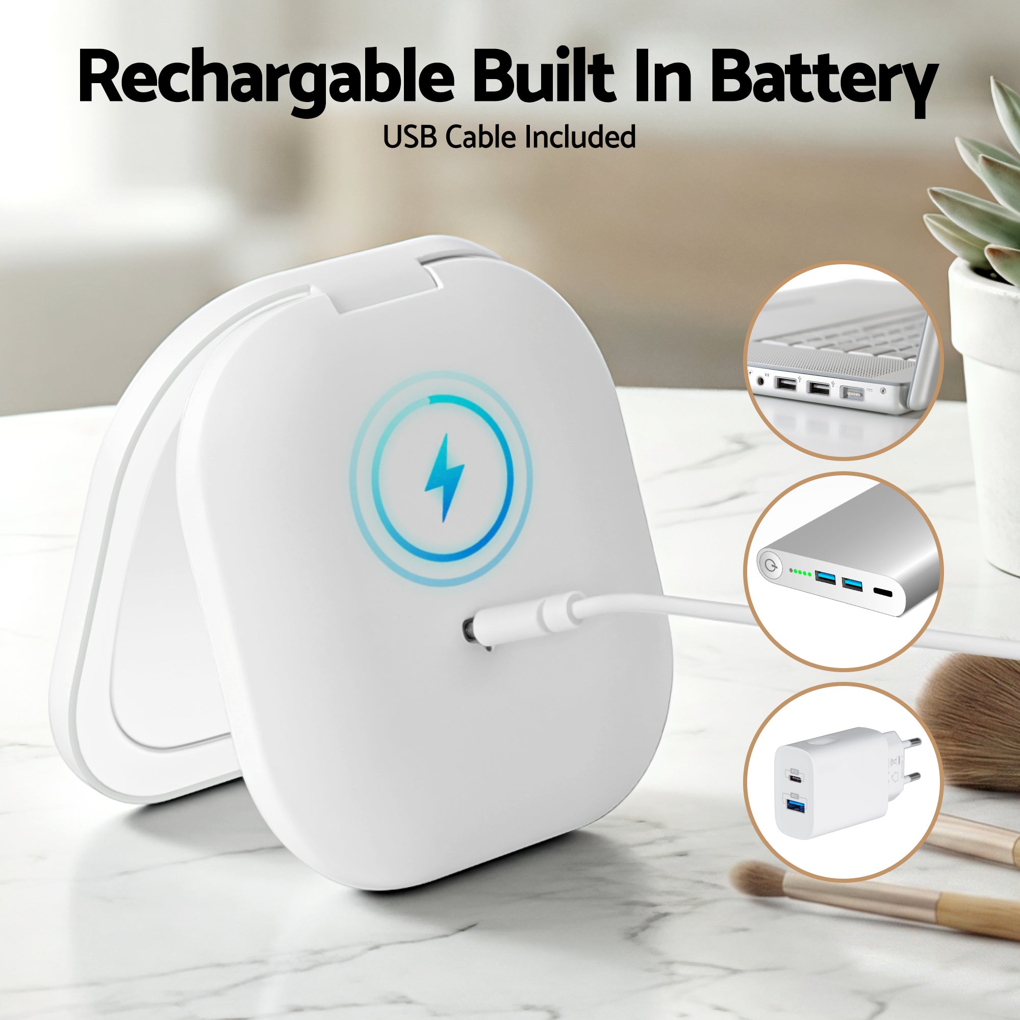 Embellir LED Compact Mirror Lighted Travel Makeup Mirror Pocket-Sized 1x 10x Magnification Square White