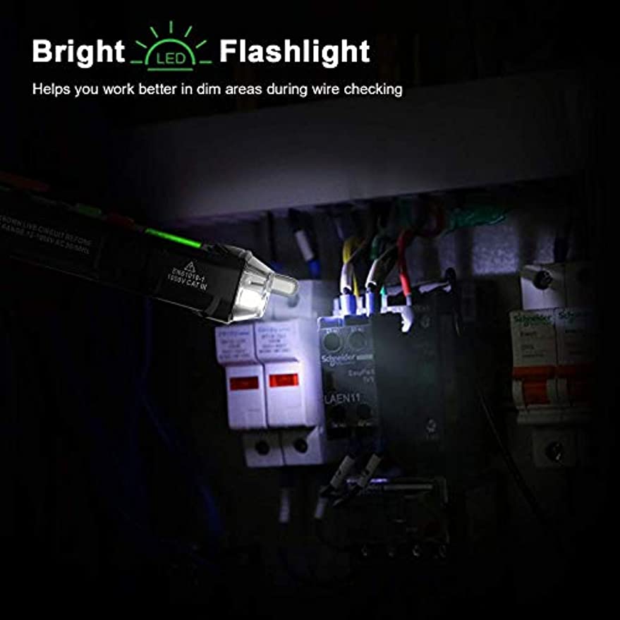 KAIWEETS HT100 Non Contact Voltage Tester AC Electricity Detect Pen 12V-1000V/48V-1000V Dual Range with LCD Display LED Flashlight Buzzer Alarm Wire Breakpoint Finder