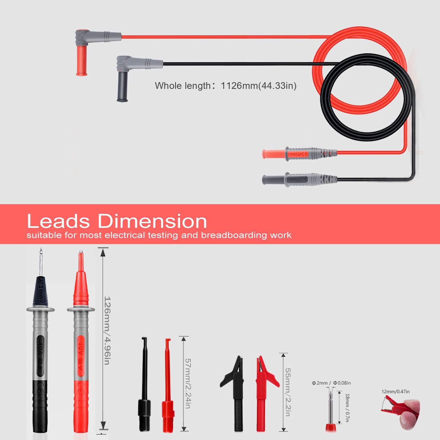 KAIWEETS Soft Silicone Electrician Test Leads Kit CAT III 1000V & CAT IV 600V with Alligator Clips and Needle Probe for Fluke/AstroAI/INNOVA Multimeter Electronic Clamp Meter 8PCS