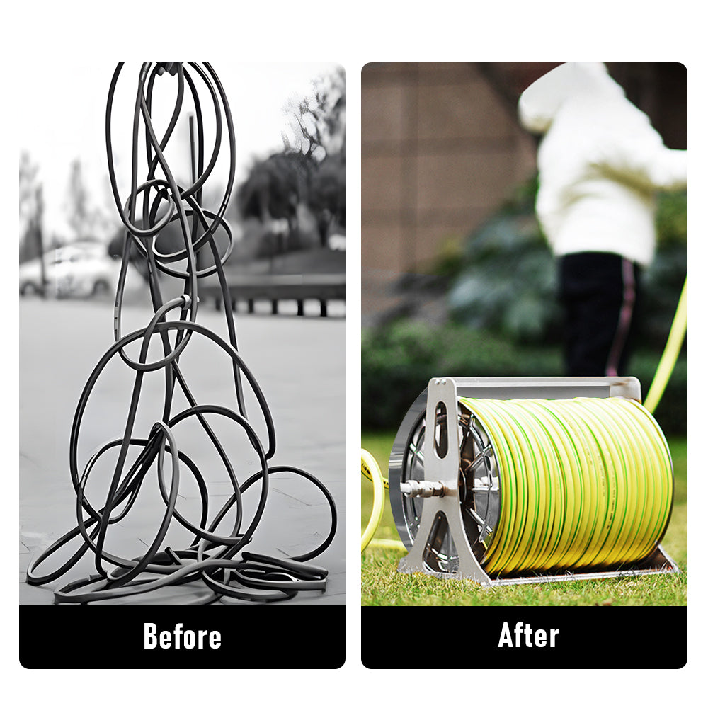 Large Stainless Steel Garden Hose Reel Cart Portable Pipe Holder With Rainproof Sunscreen Protection Lid and Crank Handle