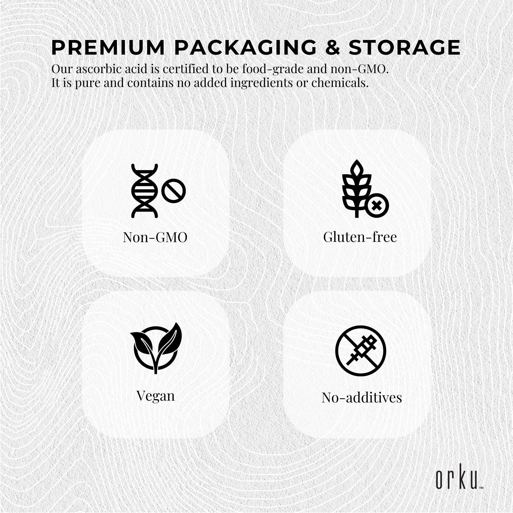 Orku 2Kg Vitamin C Powder Pure L-Ascorbic Acid - USP Grade Non-GMO
