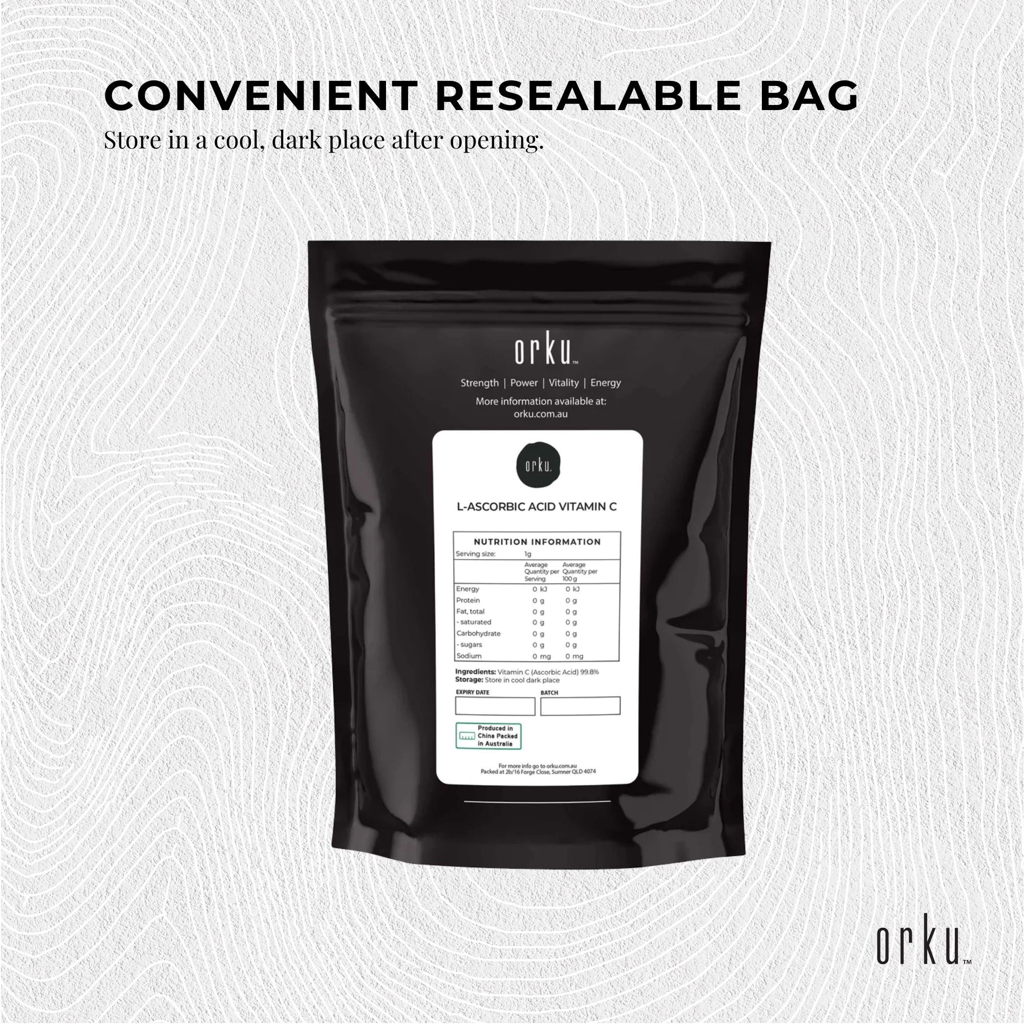 Orku 50g Vitamin C Powder Pure L-Ascorbic Acid - USP Grade Non-GMO