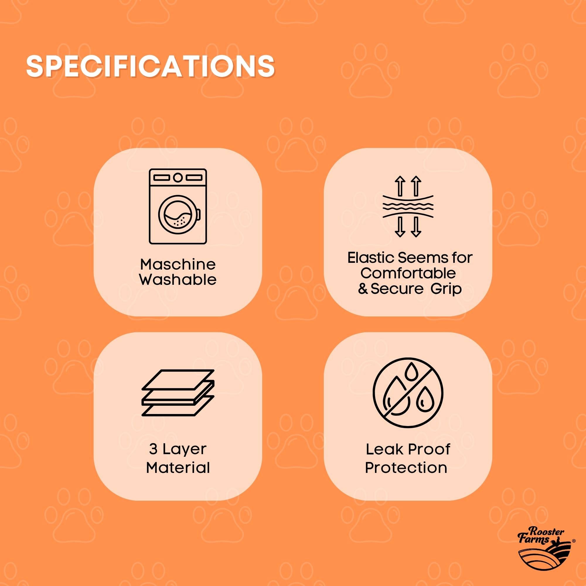 Rooster Farms Male Dog Diapers Large 3Pk - Washable Reusable Nappies Hook/Loop
